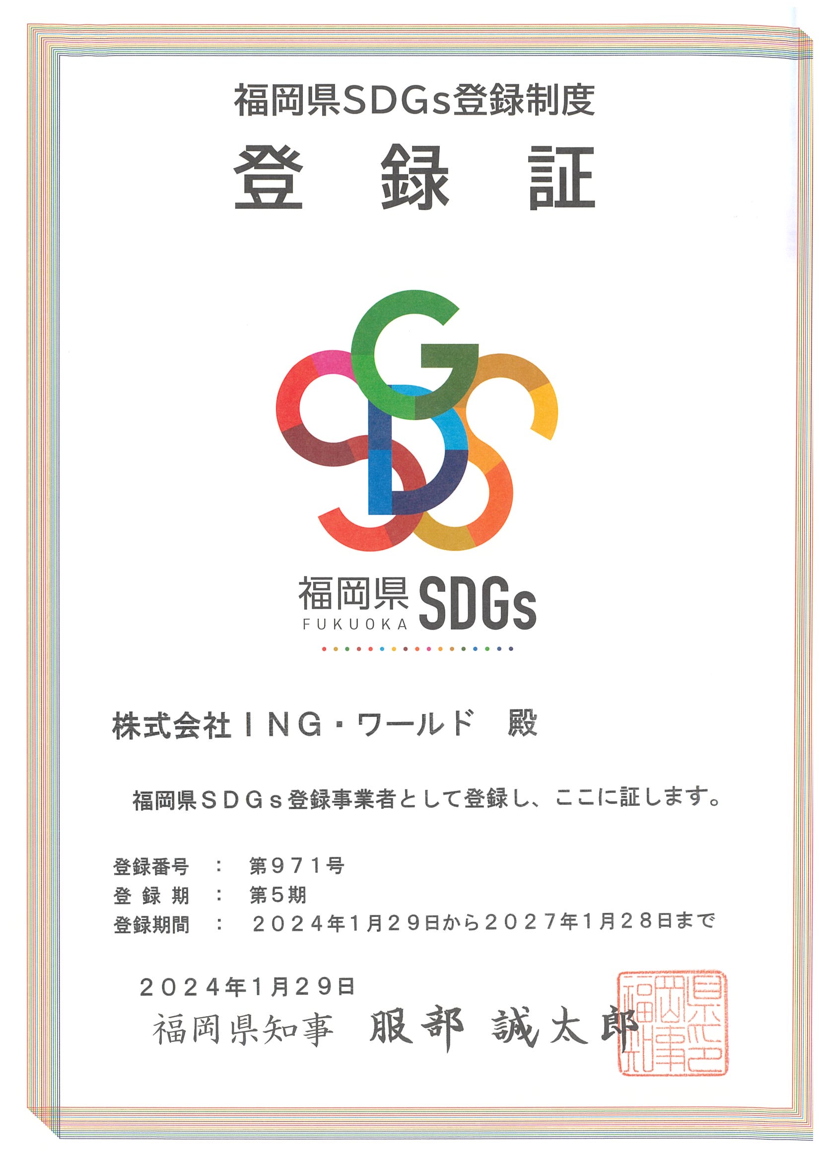 株式会社ING・ワールドは、清掃事業を主軸に、快適な施設やオフィス空間を提供するため、当社は環境保全の重要性を認識し、環境管理活動を優先課題の一つと位置づけ、環境マネジメントシステムを推進し、お客様や地域社会の環境保全に積極的に取り組んでいきます。