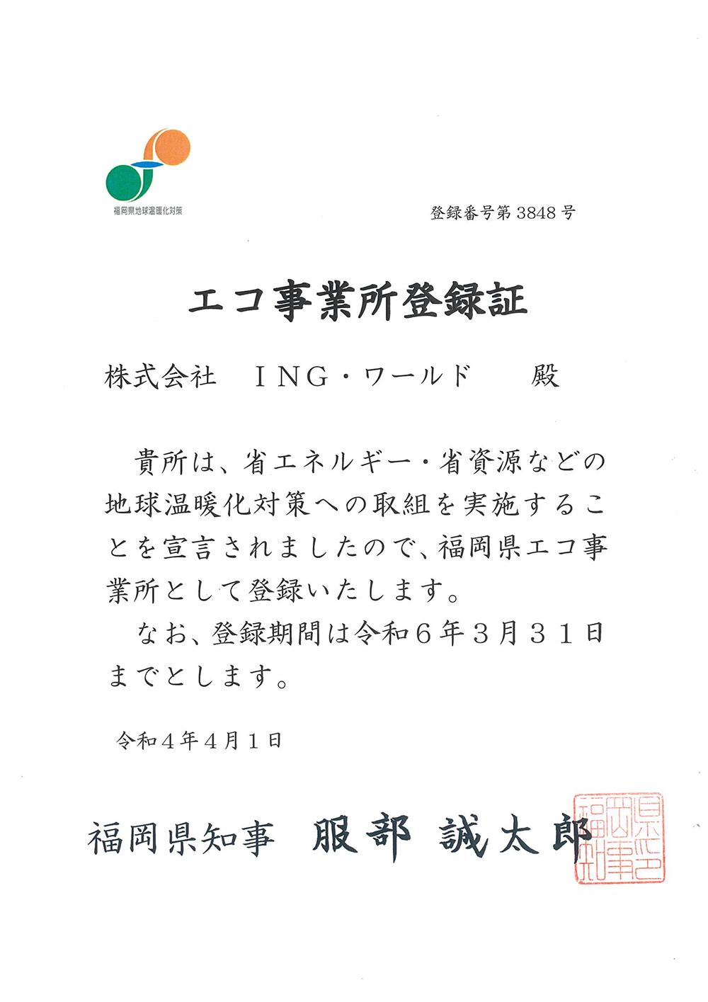地球温暖化対策を推進するため、省エネルギー・省資源に取り組むことを宣言する制度です。