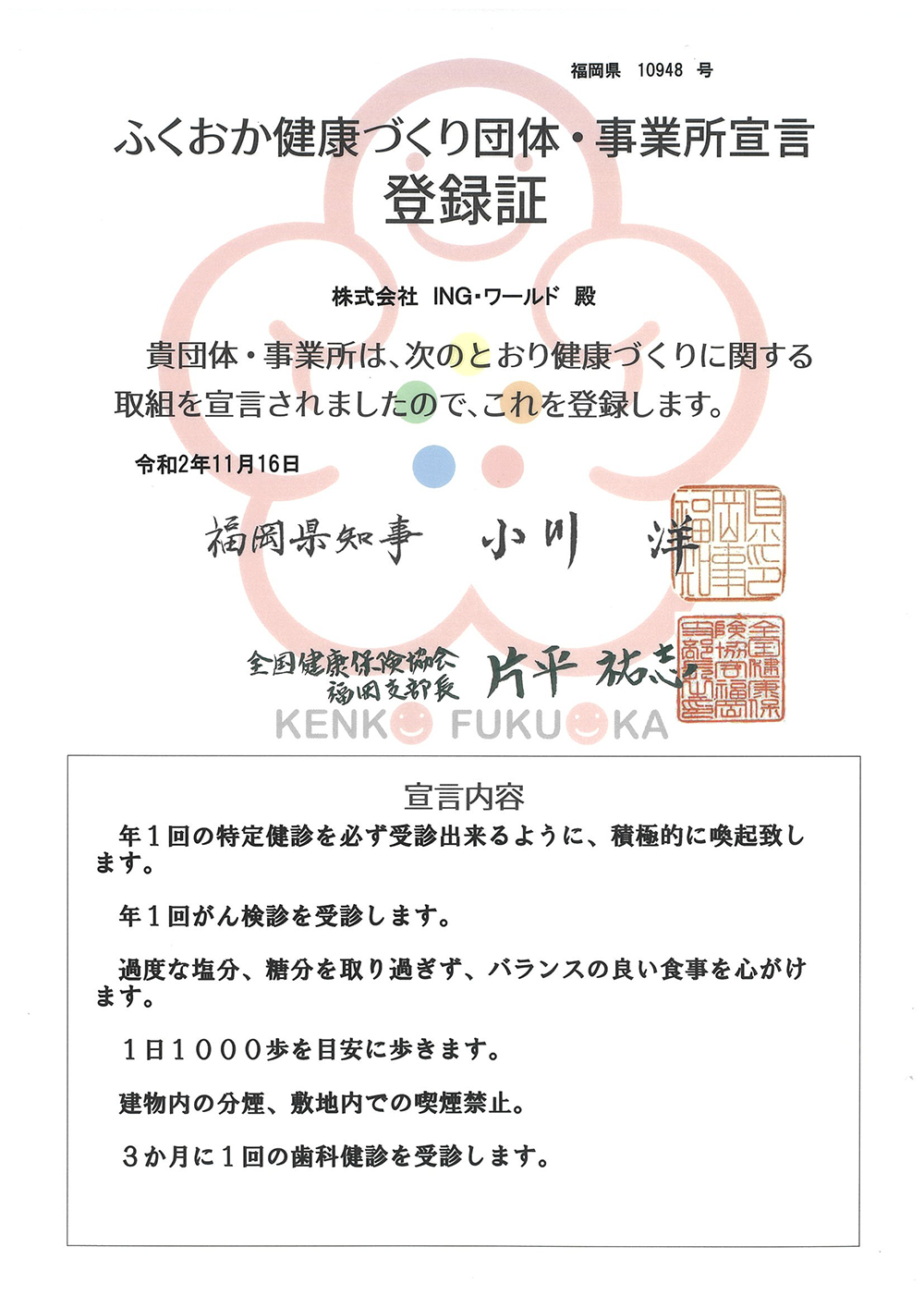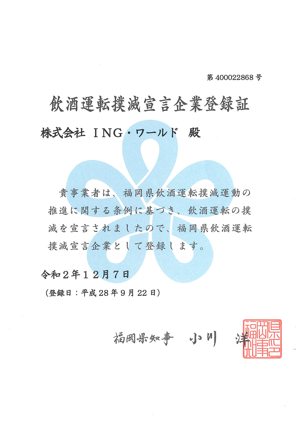 「福岡県飲酒運転撲滅運動の推進に関する条例」に基づき、事業者が飲酒運転の撲滅を宣言する制度です。