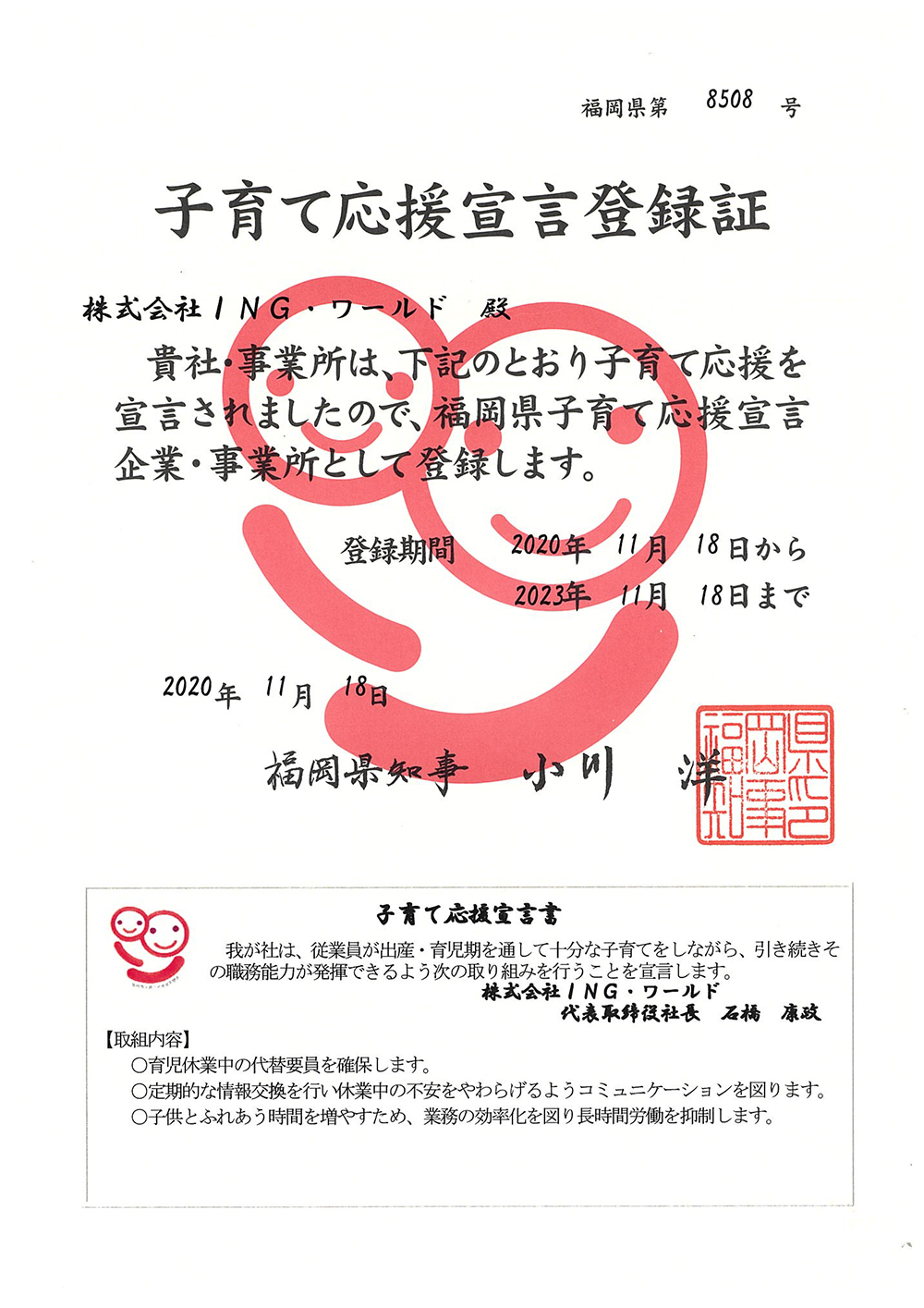 従業員の仕事と子育ての両立を支援するために取り組むことを宣言する制度です。